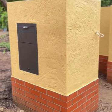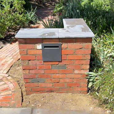 Custom brick mailbox building to suit your design. Any size, brick finish from render, brick bagging, canberra red brick, brick style to match your home.